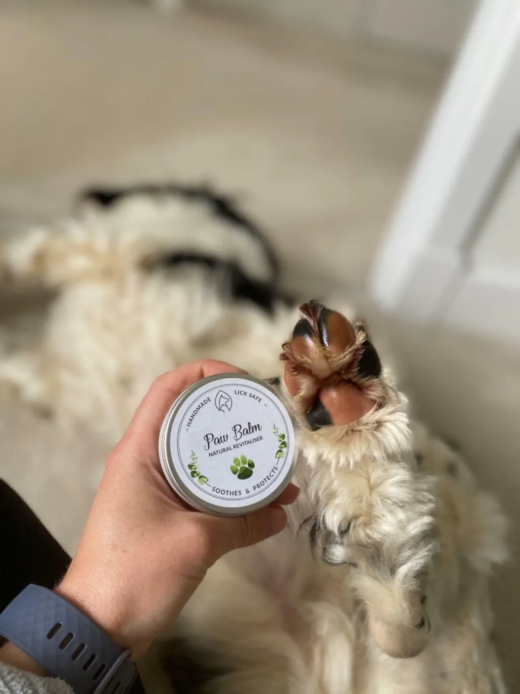 Although it is lick safe - ensure your dog doesn't lick the balm off to allow it to work! Try keeping them busy with a puzzle feeder or play with them.