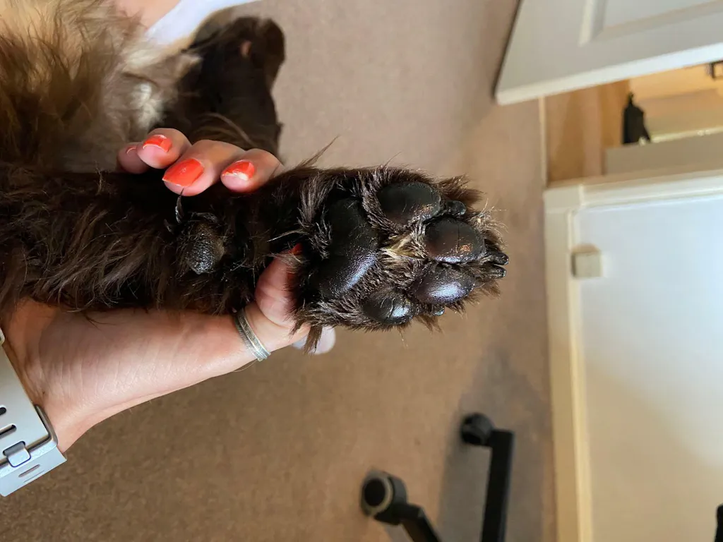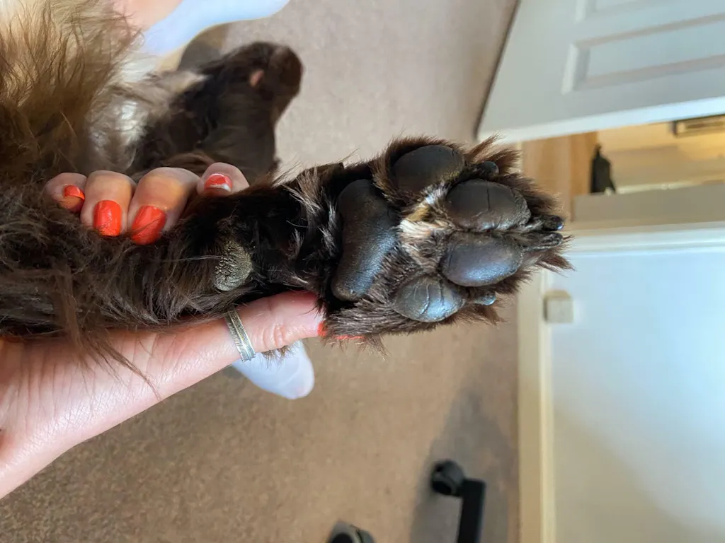 - Ensure your dog is comfortable having his/her feet handled. If they are very sensitive to this, it might be worth slowly training them by positive reinforcement first (reward each time they allow you to touch their paws).